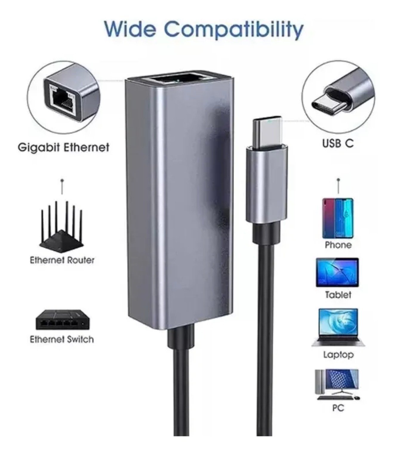 Adaptador Ethernet Usb Tipo C 3.0 A Rj45 Red Lan Gigabit, Adaptador Usb Tipo C A Usb 3.0 Compatible Con Macbook Pro Gitifo