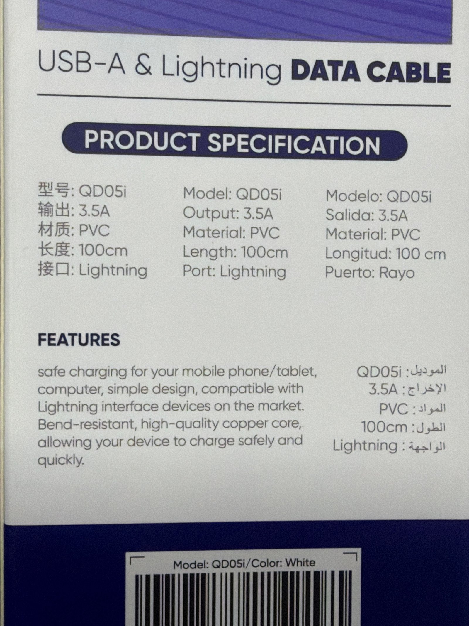 Cable usb a Lightning 3.5A Marca: TUQIN SKU: 6276 Disponibilidad: En stock $10.000 COP. Cantidad Agregar al Carrito Compartir: Descripción Etiquetas: CARGADORES Y CABLE