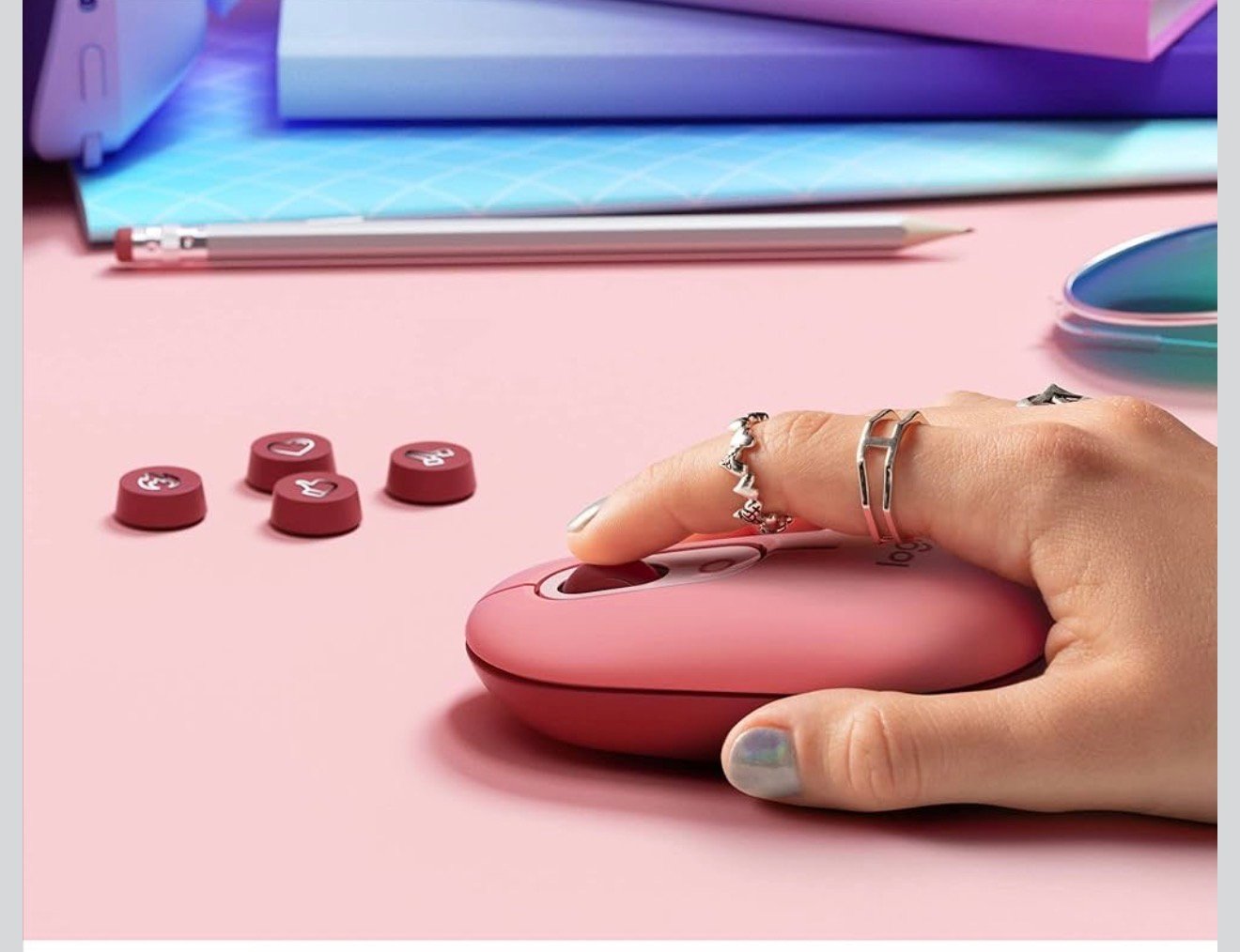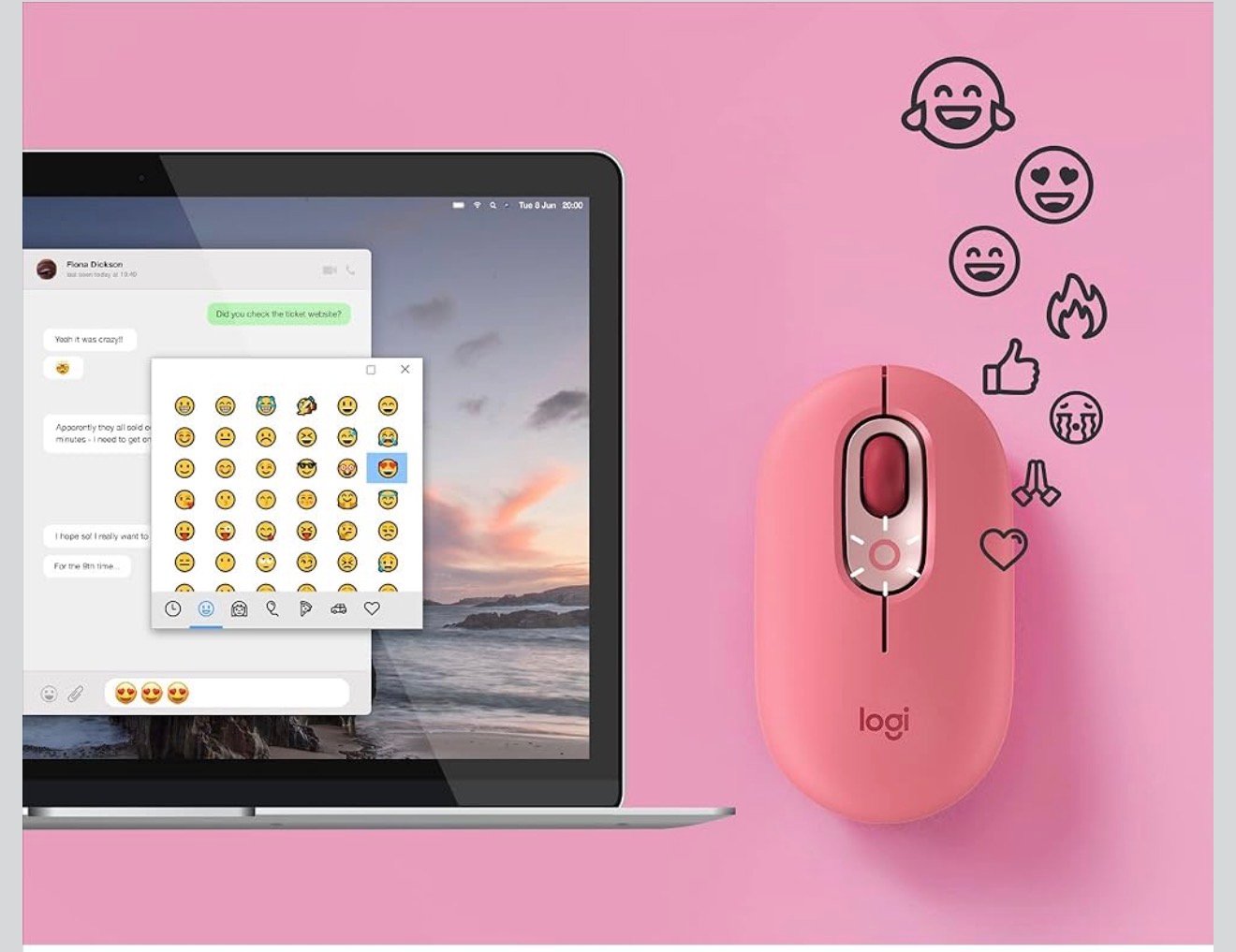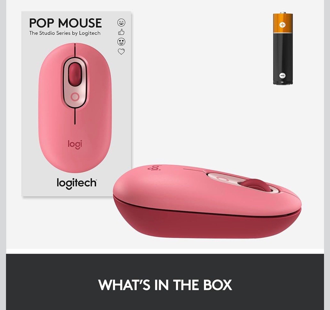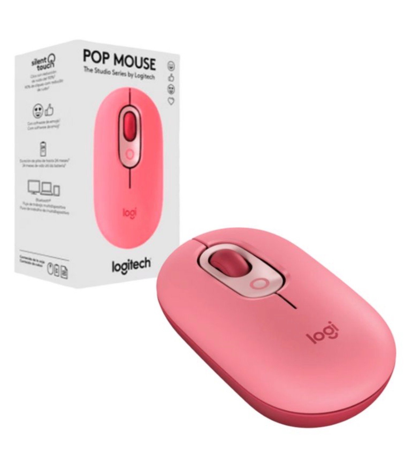 Mouse Logitech POP Inalambrico-Bluetooth, tiene un boton en la parte superior Elige emojis en un menú para usarlos en tus chats o asigna el botón mediante el software Logi Options+ para enviar tus emojis favoritos con una sola pulsación. Tiene un aspecto agradable y forma suave que se amolda a tu mano, el botón rueda SmartWheel de POP Mouse cambia del modo de desplazamiento de alta precisión al de velocidad, para recorrer rápidamente páginas largas con un leve giro. Puedes utilizar tecnología inalámbrica Bluetooth® para conectar POP Mouse a 3 dispositivos y alternar entre ellos con sólo pulsar un botón. Tecnología Bluetooth de bajo consumo, compatible con Windows 10,11 o posterior, macOS 10.15 o posterior, Chrome OS™ 6 y los emojis funciona con Microsoft Surface, Compatible con receptor USB Logi Bolt,Tipo de pilas/batería: 1 pila AA (incluida), Tecnología Bluetooth de bajo consumo. Número de botones: 4 (clic izquierdo/derecho, botón rueda con clic de botón central, botón superior), Botón superior personalizable con software de emojis.