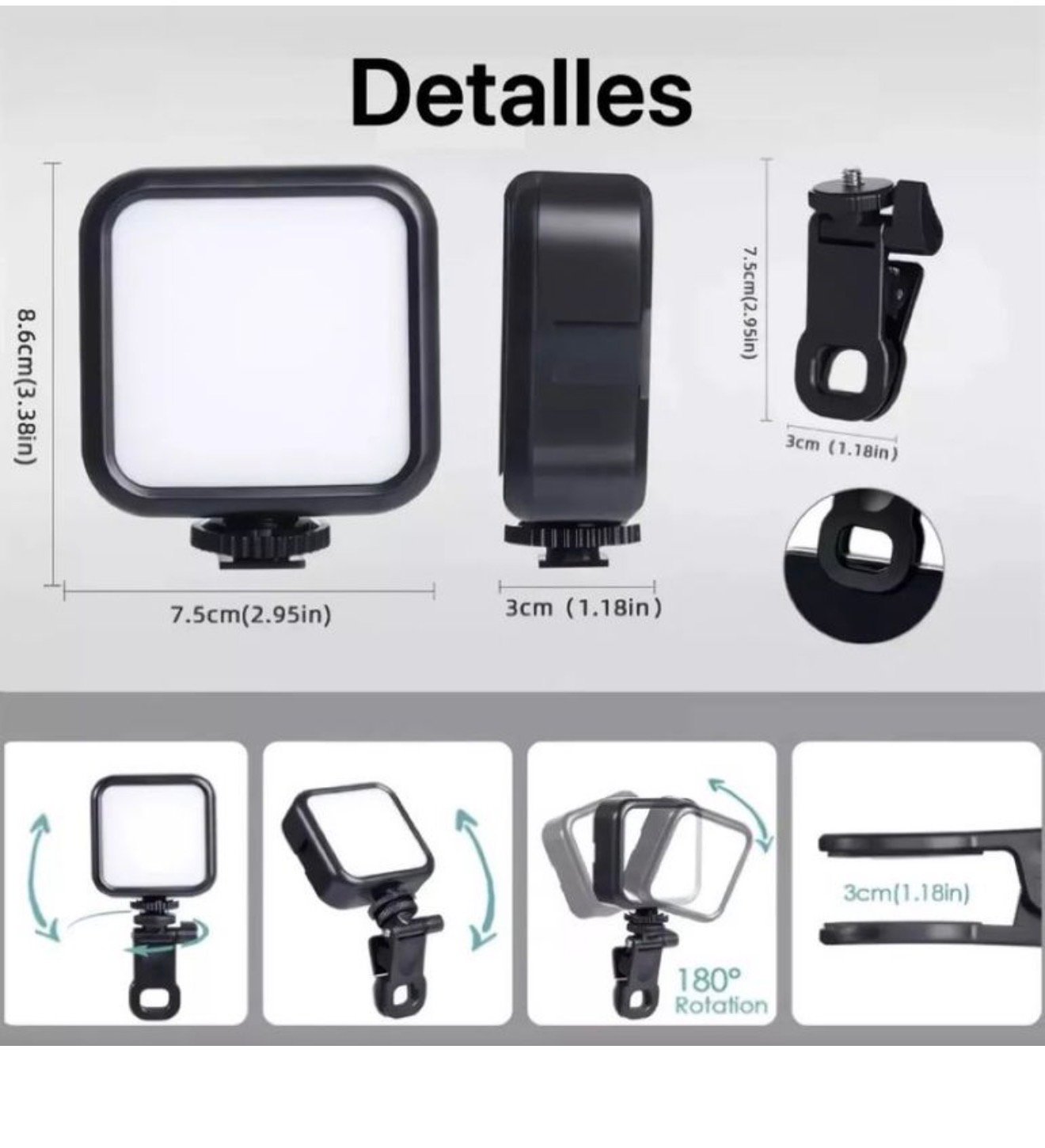 Luz led celular rgb ay-83 Marca: OTROS SKU: 6520 Disponibilidad: En stock $50.000 COP. Antes: $65.000 COP. -23% Cantidad Agregar al Carrito Compartir: Descripción Luz Led Celular Cámara Video Rgb Portable Spot RecargableCARACTERISTICAS:* La luz LED RGB recargable AY-83 * Luz de alta potencia con ajuste de tono* temperatura y potencia de iluminación* Ideal para crear contenido, tomar fotos, grabar videos y todo tipo de actividades creativas.* Dos tipos de soportes: Clip para celulares, PC o tablets, perfecto para montarlo en cualquier dispositivo.* Tornillo de 1/4 para ubicarlo en trípodes y lograr mayor estabilidad.* Uso práctico en cualquier lugar: compacto, fácil de llevar y colocar donde más lo necesites.* Esta luz LED es ligera y de tamaño pequeño, ideal para llevar en viajes o negocios. Etiquetas: AROS DE LUCES /SOPORTES & HOLDER