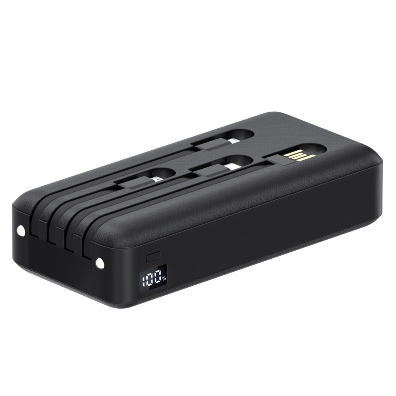 Esta batería externa todo en uno cuenta con cables Micro USB, Lightning y Tipo C integrados para carga directa, admite la autocarga por USB y es compatible con la mayoría de los dispositivos. Incluye una linterna LED dual y protección inteligente contra cortocircuitos, sobrecorriente y sobrecalentamiento.